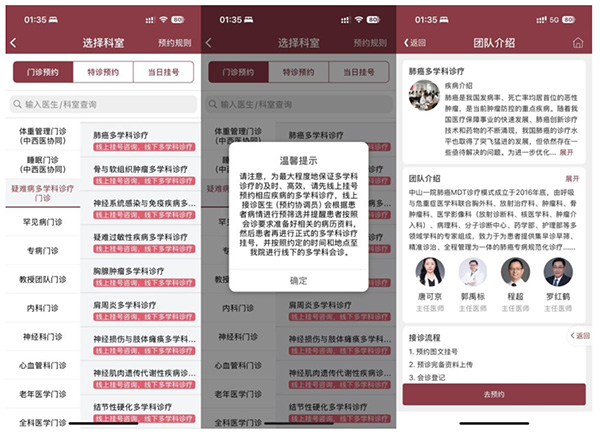 医院最新的患者APP已将多学科诊疗放在醒目位置,方便疑难重症患者快速联系专家团队并及时进行下一步会诊。“先线上预问,后线下会诊”的互联网医院MDT平台整合服务模式既弥补了门诊场地空间有限的不足,又极大地便利了患者,还通过移动APP和医院信息互联互通提升了医患交流和开展业务的质量效率,具有普适性和较高的推广应用价值。
