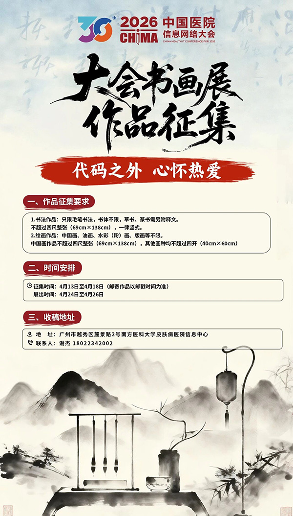墨香氤氲,医信芳华。三十年的风雨兼程,三十年的初心如磐——这一切都值得被铭记,被书写,被传颂。期待您的笔墨丹青,为CHIMA 2026增添一抹别样的色彩。让我们相聚珠海,在时光里重逢,共绘医信事业的下一个三十年。