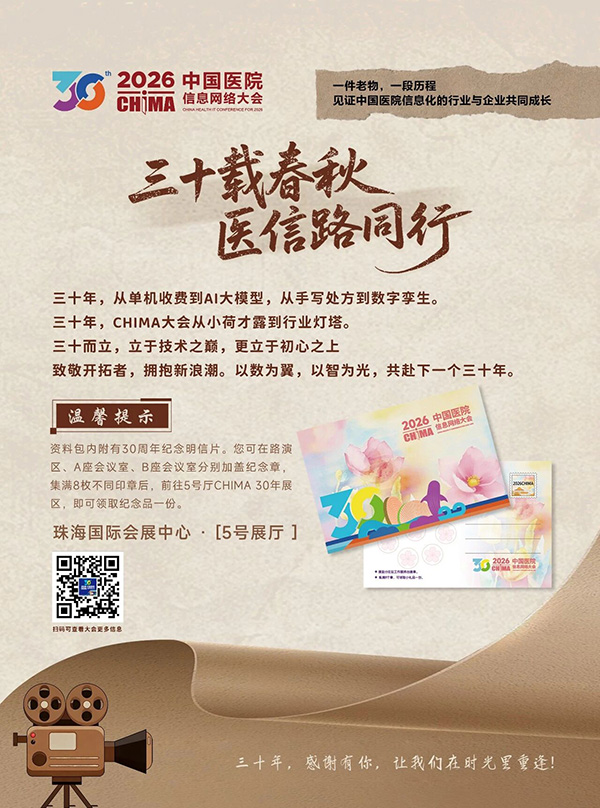 三十而立,继往开来。CHIMA 2026不仅铭刻过往的坚实足迹,更吹响了迈向智慧医疗新阶段的集结号。