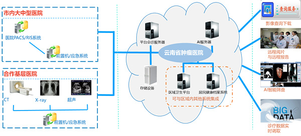 云南省肿瘤医院的肺癌诊疗一体化项目通过建设肺癌人工智能辅助诊断和肺癌辅助治疗决策系统,实现医院、相关学协会诊疗平台及相关医疗机构之间肺癌筛查、诊断和辅助治疗一体化。