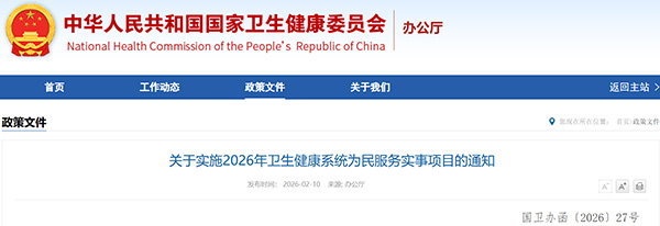 三部门发布《关于实施2026年卫生健康系统为民服务实事项目的通知》